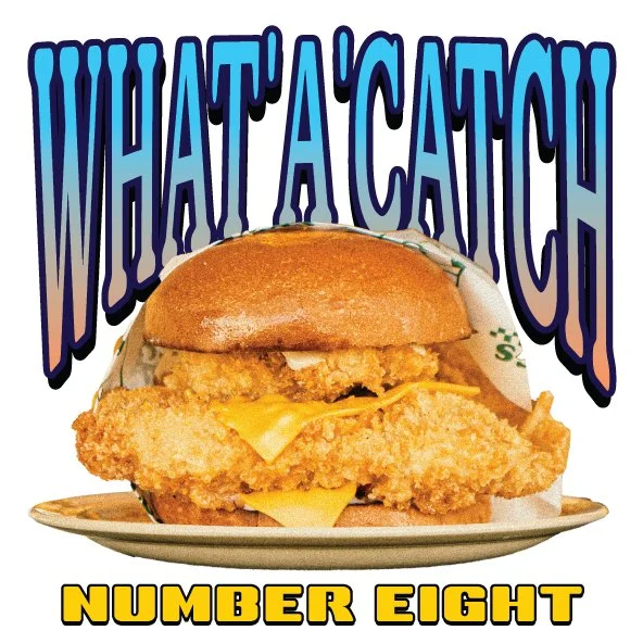 130G+ Catch of the day, panko crumbed, Lucky Gs Tartare, 2x American cheese,